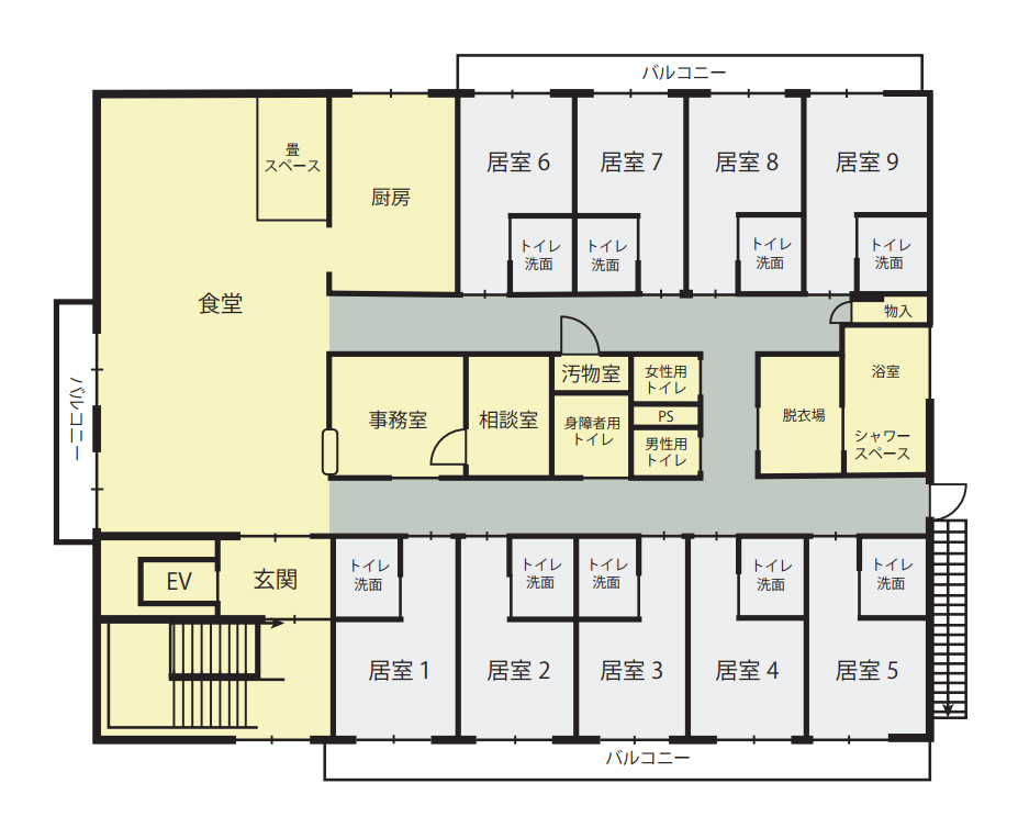 「泊まり(短期宿泊)」は全室トイレ付個室で、